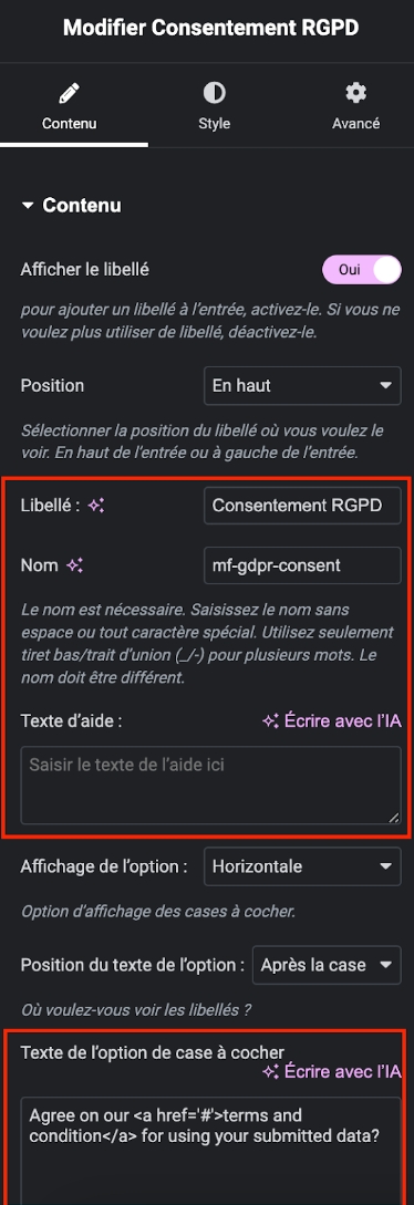 Pour ajouter un champ de Consentement RGPD, suivez ces étapes :