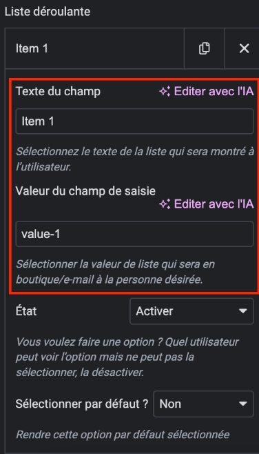Pour ajouter un champ de type sélecteur (liste déroulante), suivez les étapes ci-dessous :
