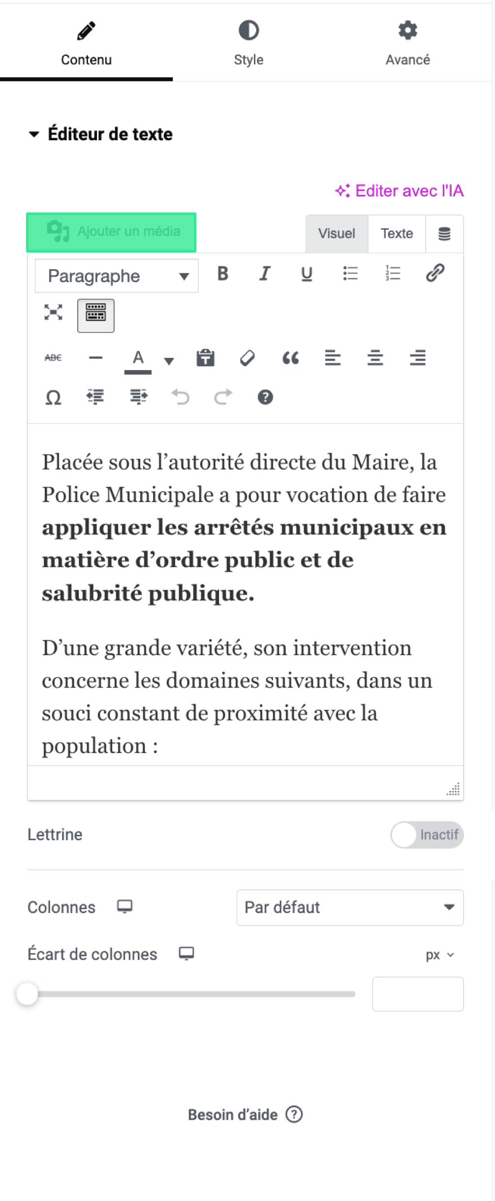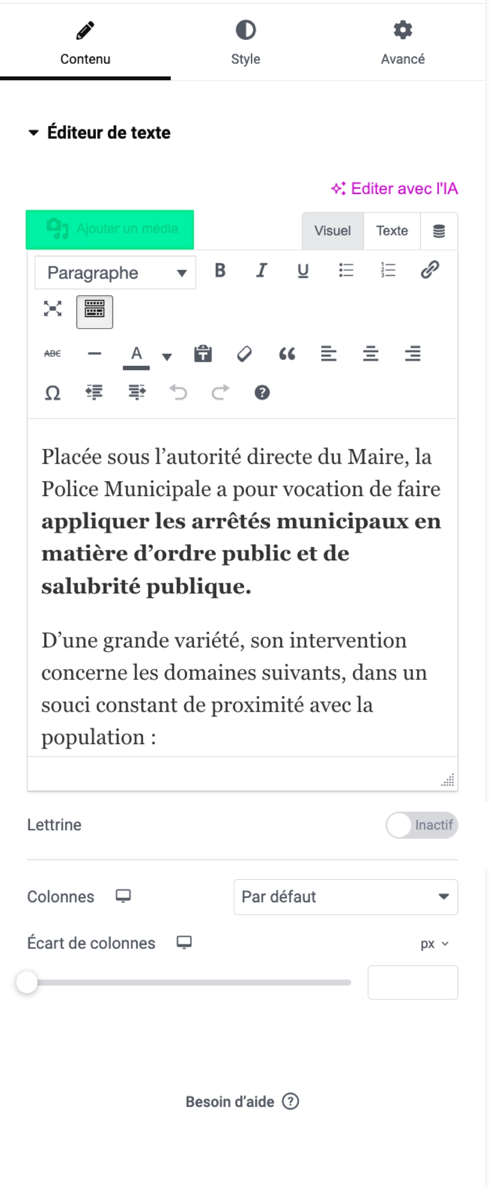 Ajouter une vidéo depuis votre ordinateur : Dans l'éditeur de texte WordPress, cliquez sur le bouton "Ajouter un média" pour télécharger une vidéo depuis votre ordinateur. Sélectionnez le fichier vidéo que vous souhaitez ajouter, puis cliquez sur le bouton "Insérer dans l'article".